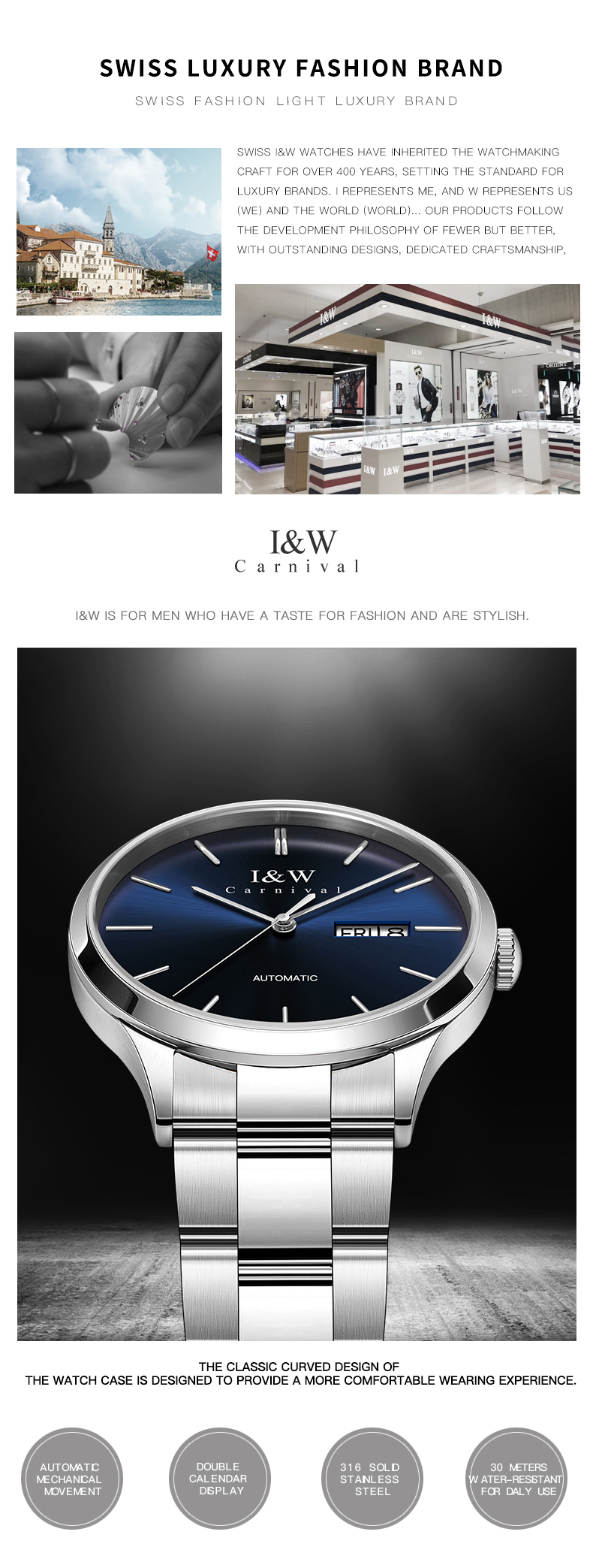 | Walch I&W Swiss Brand Watch with 150 Year Craftsmanship Stainless Steel Case and Strap Synthetic Sapphire Crystal Miyota 8205 Seiko NH36 Movement 41mm Dial Butterfly Clasp Royal Blue Black Silver Code 508 remove | IW.520G I&W official authentic men's steel belt mechanical watch new business color matching fully automatic thin watch remove | IW.522G Official authentic I&W watch men's fully automatic mechanical watch men's fashion watch brand trend watch remove | IW.530G I&W genuine fully automatic mechanical watch brand men's simple fashion trend hollow watch waterproof steel belt men's watch remove | IW.592 remove | IW.570G I&W official genuine men's watch hollow movement fully automatic mechanical watch thin Swiss brand watch remove | |||||||||