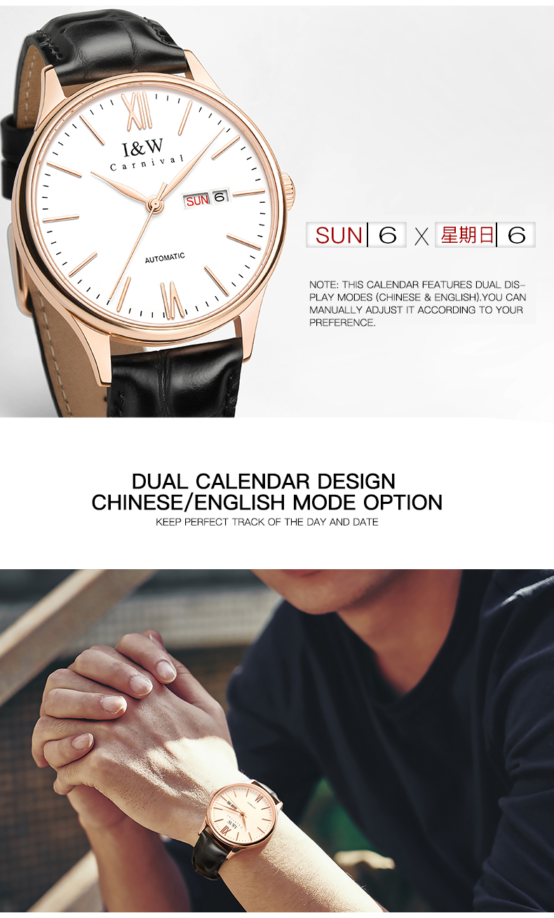 IW.516G I&W Swiss genuine men’s watch dual calendar fully automatic mechanical watch 18K gold dial cowhide strap business watch