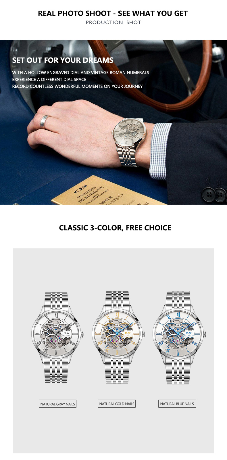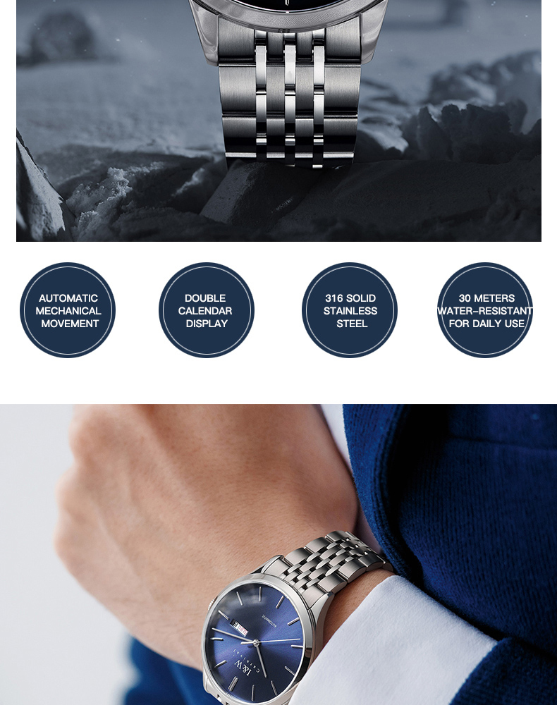 | Description | Case material: stainless steel Movement type: natural Miyuta 8205 gold Seiko NH36 Dial diameter: 42mm Dial thickness: 10.5mm Clasp style: butterfly buckle Mirror material: synthetic sapphire Strap material: stainless steel | Case material: stainless steel Movement type: Miyota 8205/Seiko NH36 Dial diameter: 41mm Dial thickness: 11mm Clasp style: butterfly buckle Mirror material: synthetic sapphire Strap material: stainless steel | Case material: stainless steel Movement type: natural Miyuta 8205 gold Seiko NH36 Dial diameter: 42mm Dial thickness: 10.5mm Clasp style: butterfly buckle Mirror material: synthetic sapphire Strap material: stainless steel | Case material: stainless steel Movement type: Seiko NH36 Dial diameter: 42mm Dial thickness: 11mm Buckle style: pin buckle Mirror material: synthetic sapphire Strap material: cowhide | ||||||