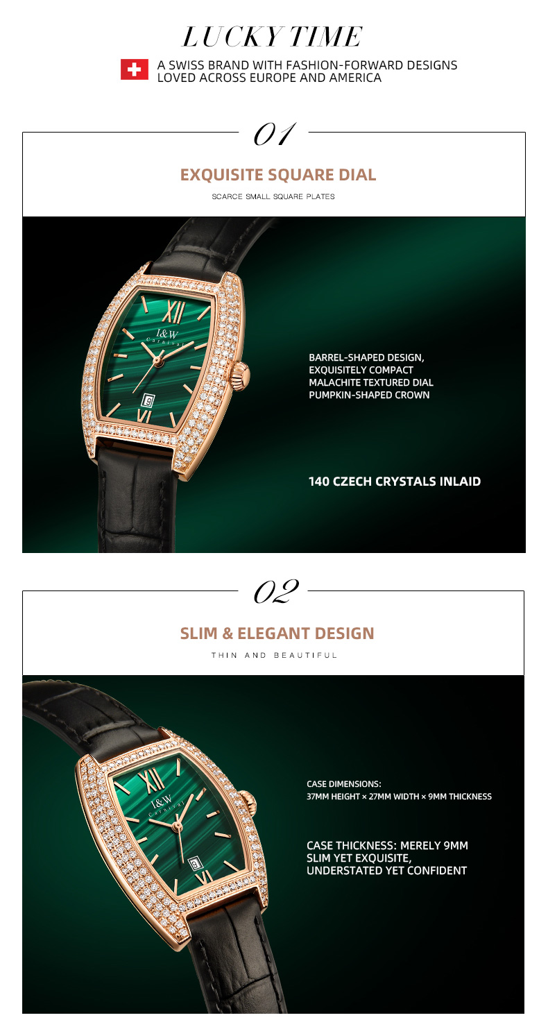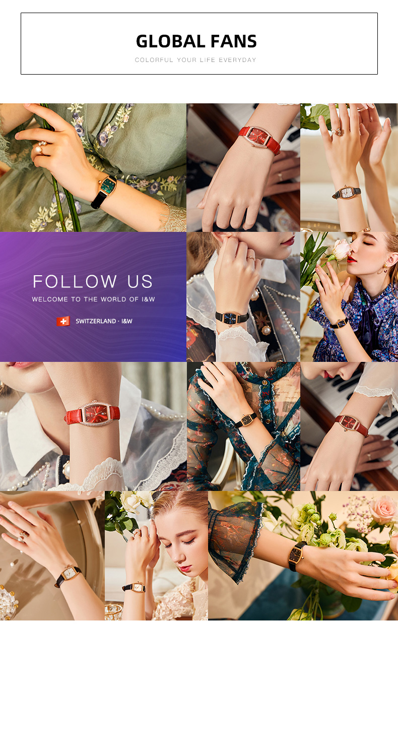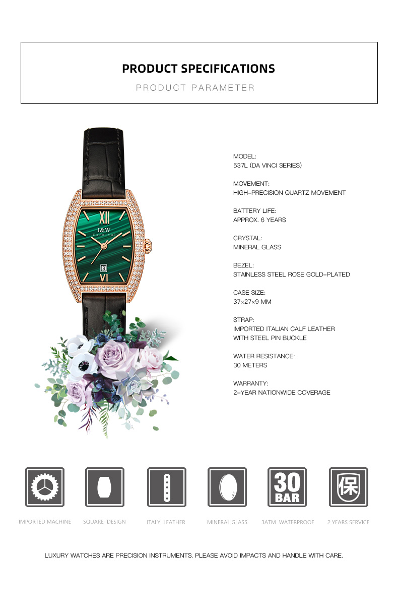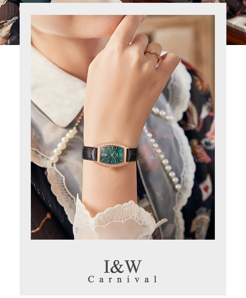 IW.537L I&W Swiss genuine women’s watch with barrel-shaped diamond dial, quartz watch, bamboo leather strap, business watch