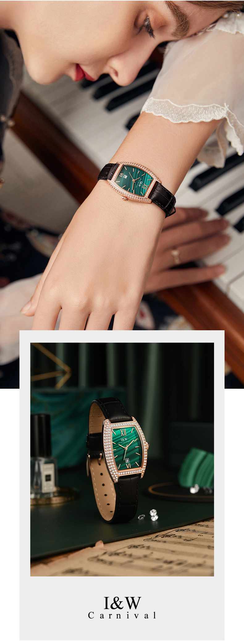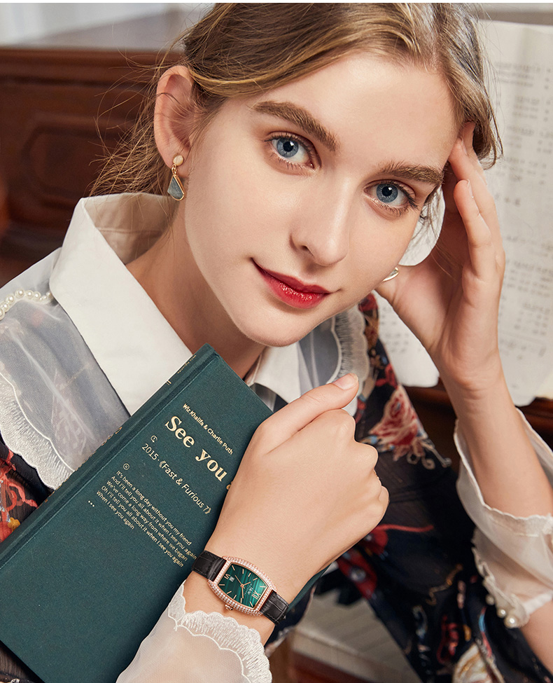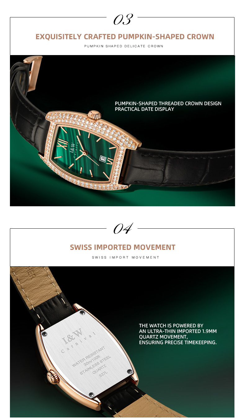 IW.537L I&W Swiss genuine women’s watch with barrel-shaped diamond dial, quartz watch, bamboo leather strap, business watch
