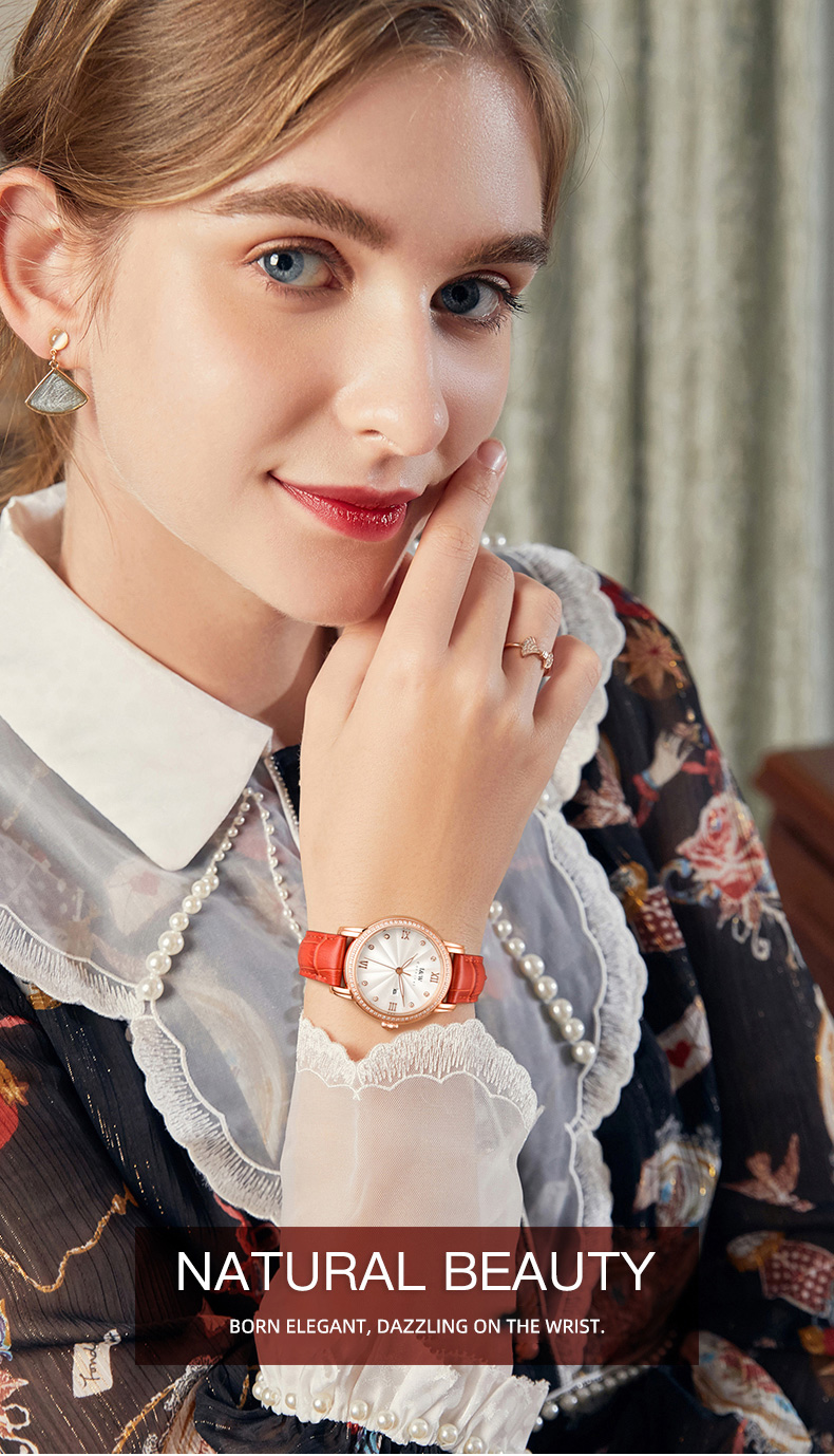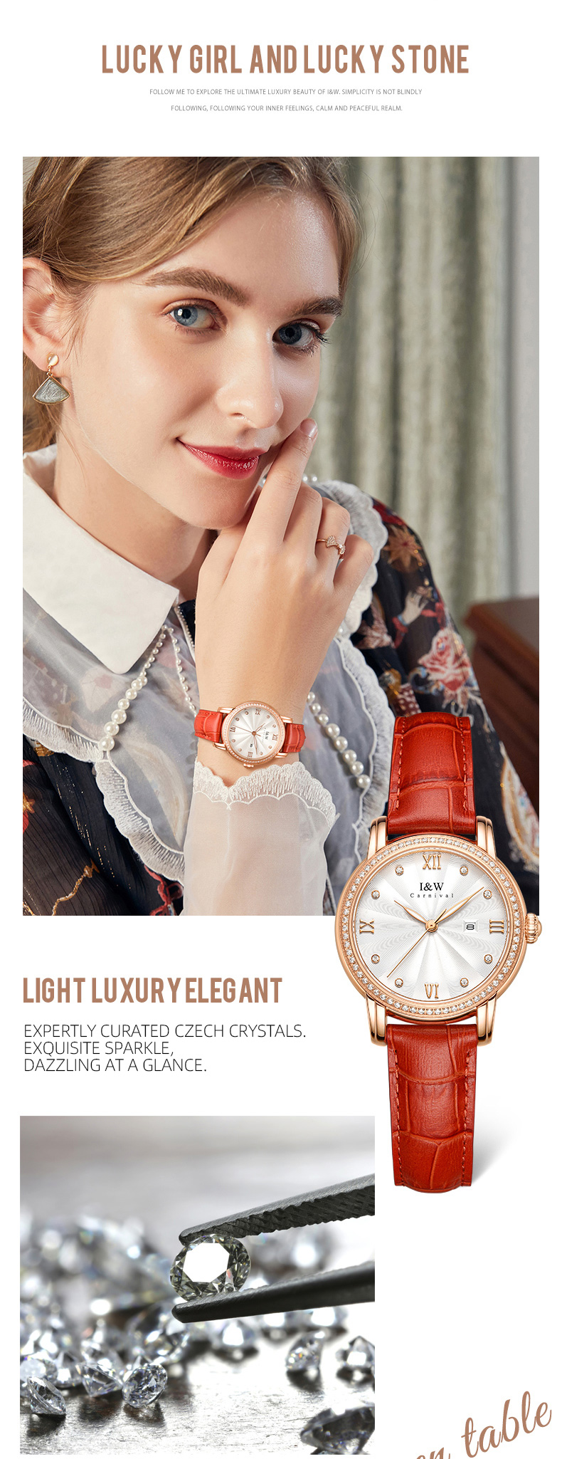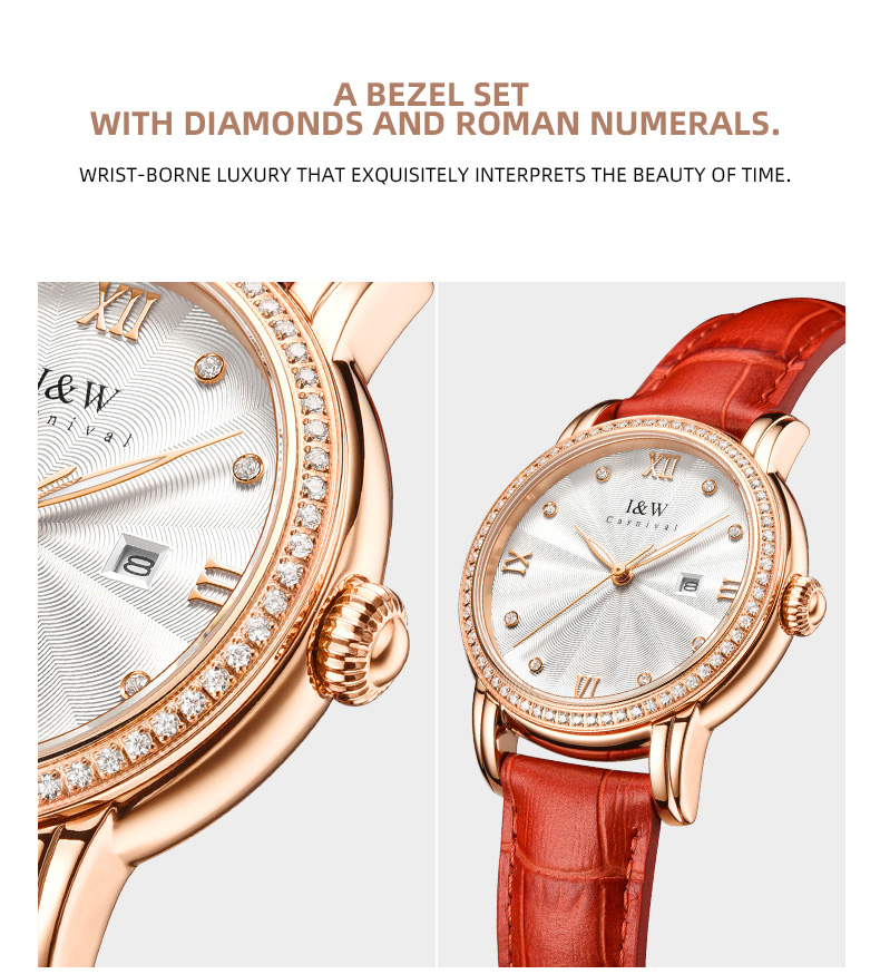 IW.539L I&W Swiss authentic luxury women’s quartz watch with diamond dial and bamboo leather strap business watch