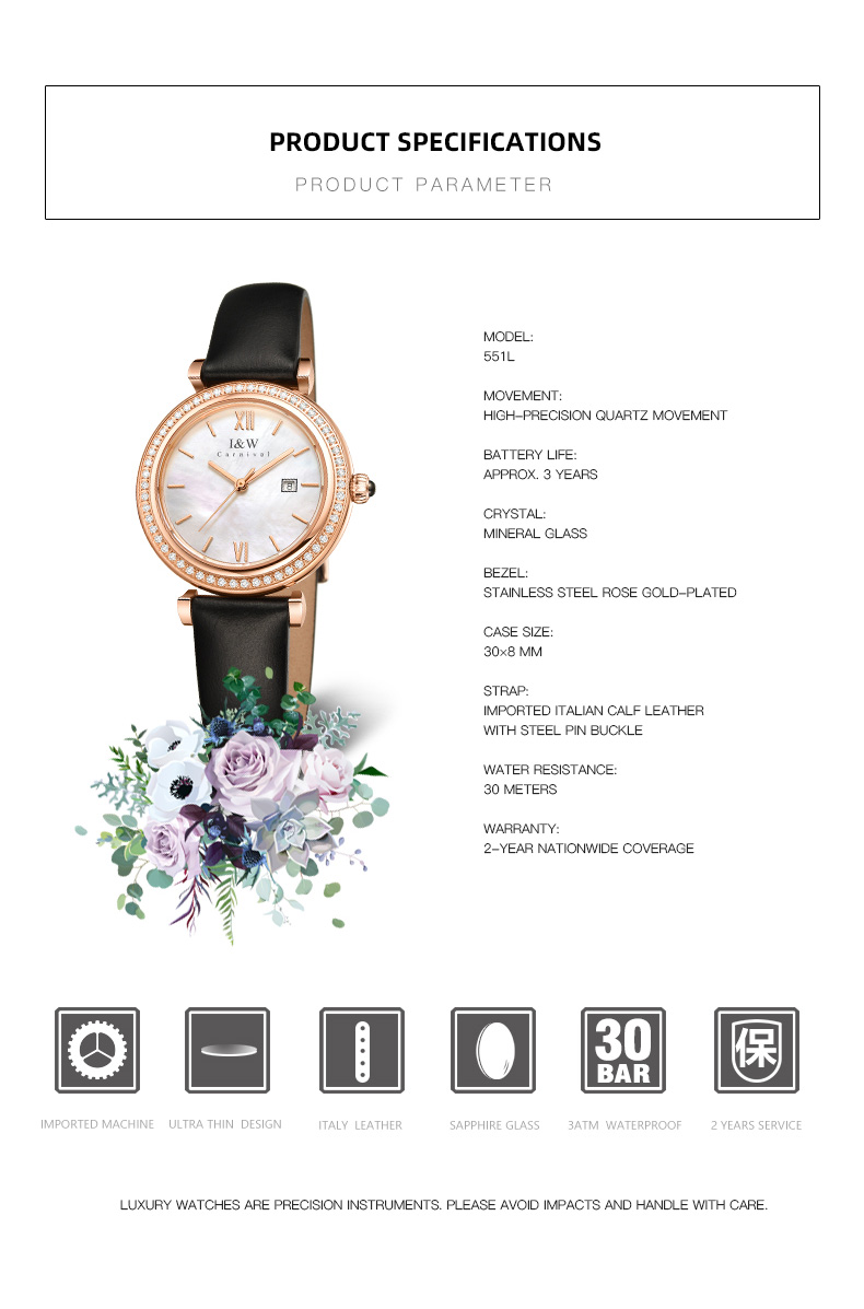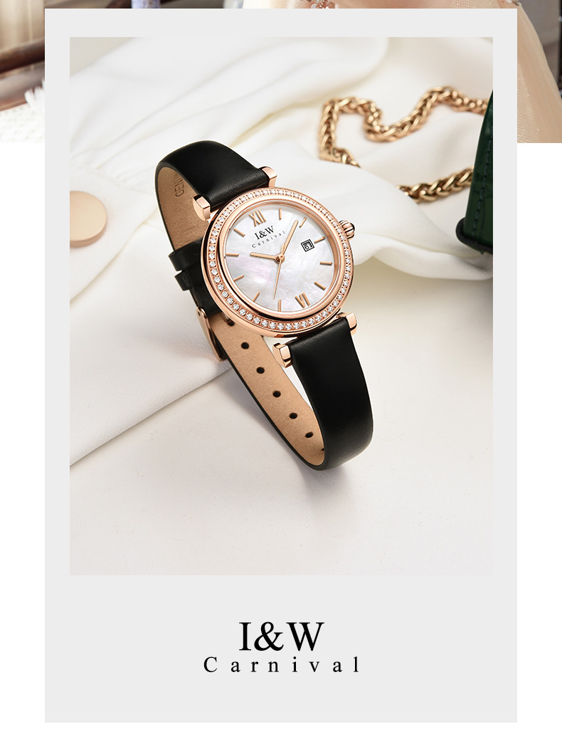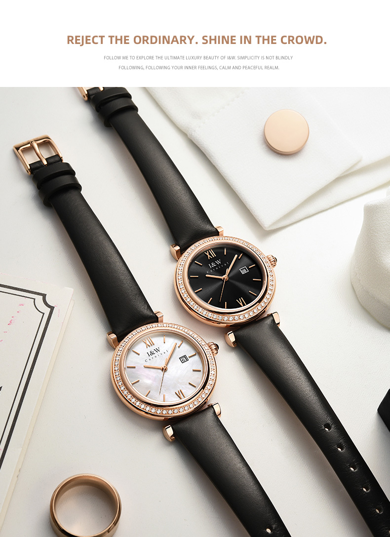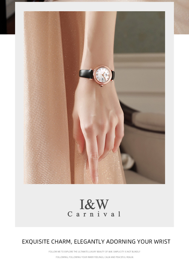 IW.551L I&W Swiss genuine women’s round quartz watch with Baosteel strap and diamond dial business watch rose gold watch