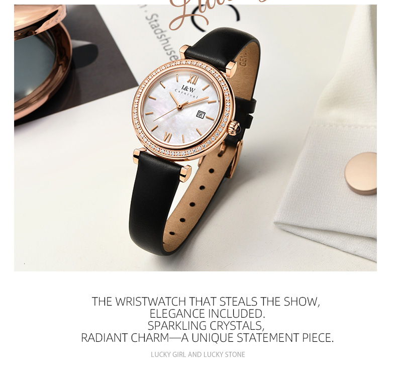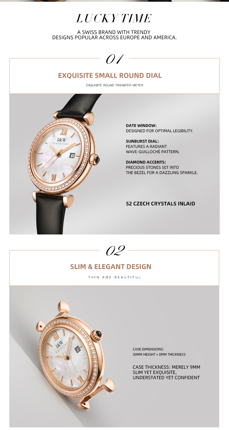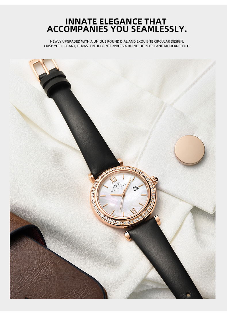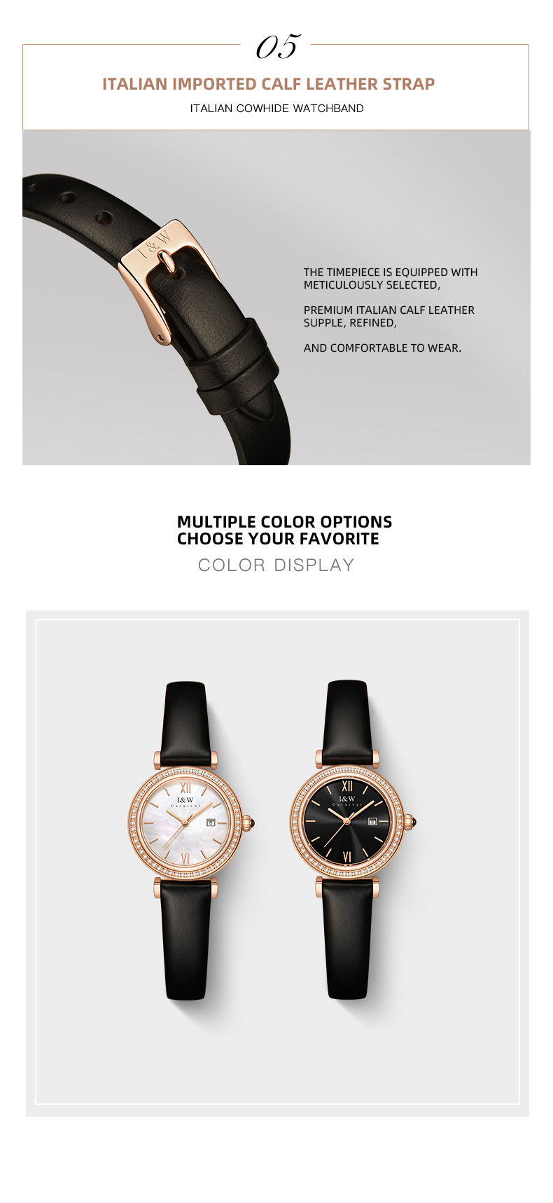 IW.551L I&W Swiss genuine women’s round quartz watch with Baosteel strap and diamond dial business watch rose gold watch