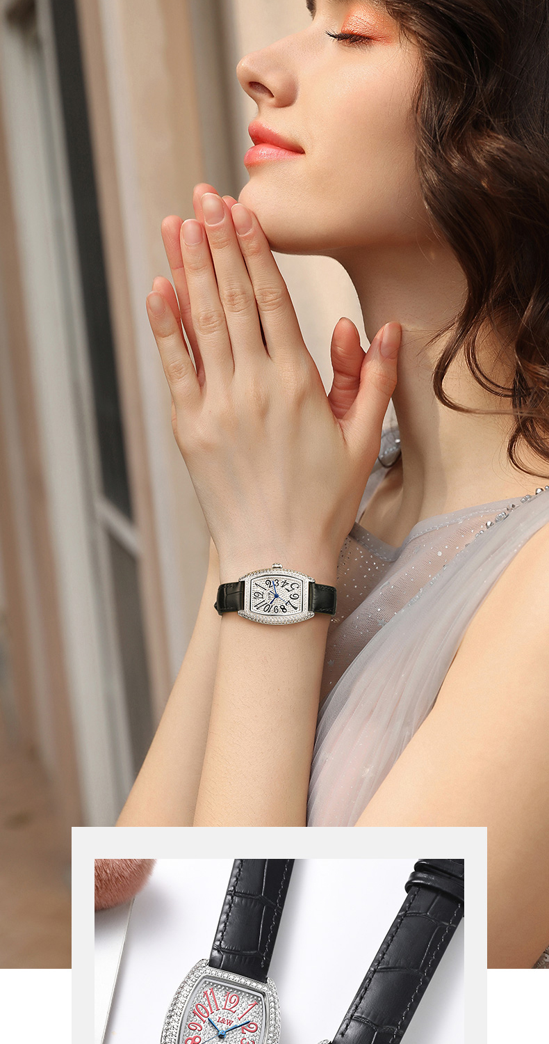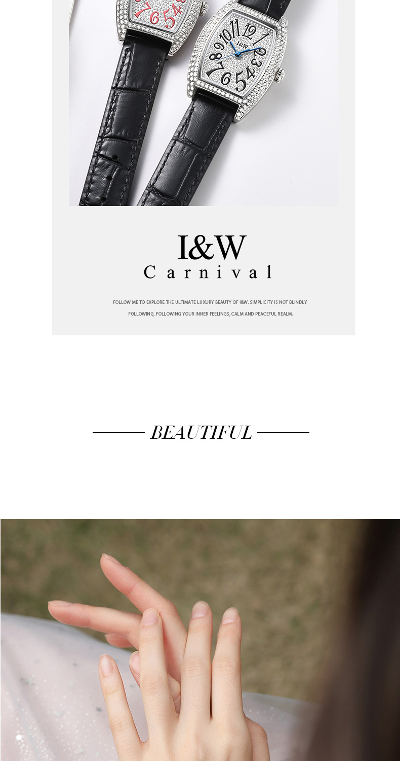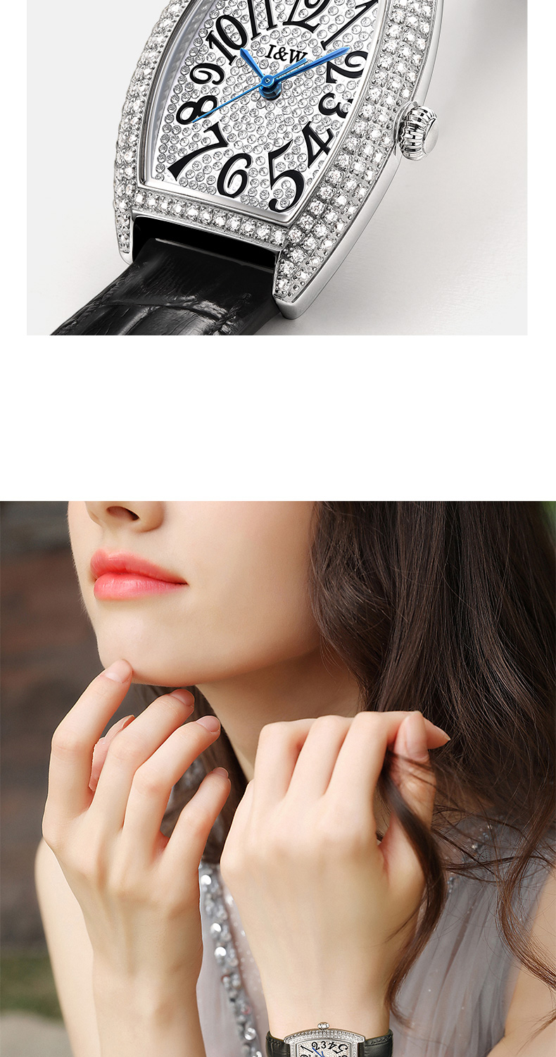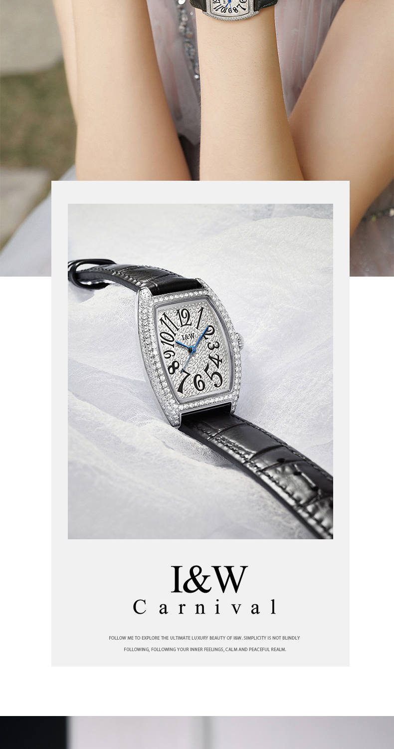 IW.55800L I&W Starry Sky Series Women’s Tonneau Quartz Watch with Diamond Dial and Leather Strap, Swiss Authentic Watch