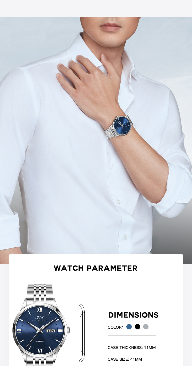 | Description | Case material: stainless steel Movement type: Dial diameter: 32mm Dial thickness: 8mm Buckle style: pin buckle Mirror material: synthetic sapphire Strap material: cowhide | Case material: stainless steel Movement type: Citizen 8205AAA Dial diameter: 41mm/36mm Dial thickness: 11mm Clasp style: butterfly buckle Mirror material: artificial sapphire Strap material: stainless steel | Case material: stainless steel Movement type: natural Miyuta 8205 gold Seiko NH36 Dial diameter: 42mm Dial thickness: 10.5mm Clasp style: butterfly buckle Mirror material: synthetic sapphire Strap material: stainless steel | |||||||||