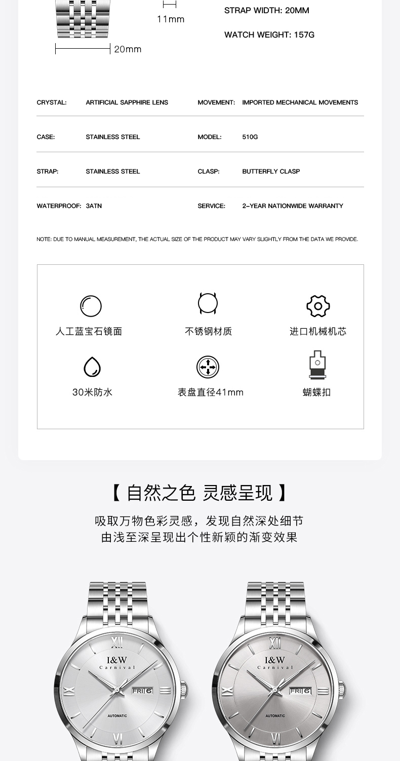| IW.592 remove | IW.512L I&W official authentic ladies' steel belt mechanical watch new couple watch luminous series famous watch pair watch remove | IW.522G Official authentic I&W watch men's fully automatic mechanical watch men's fashion watch brand trend watch remove | IW.528 Steel belt remove | I&W Swiss Fashion Light Luxury Watch Stainless Steel Case & Strap Synthetic Sapphire Crystal Citizen 82S0 Movement Butterfly Clasp 41mm Dial 11mm Thick Code 525 remove | IW.510G I&W official authentic men's thin fully automatic mechanical watch steel strap watch Swiss brand watch remove | |||||||