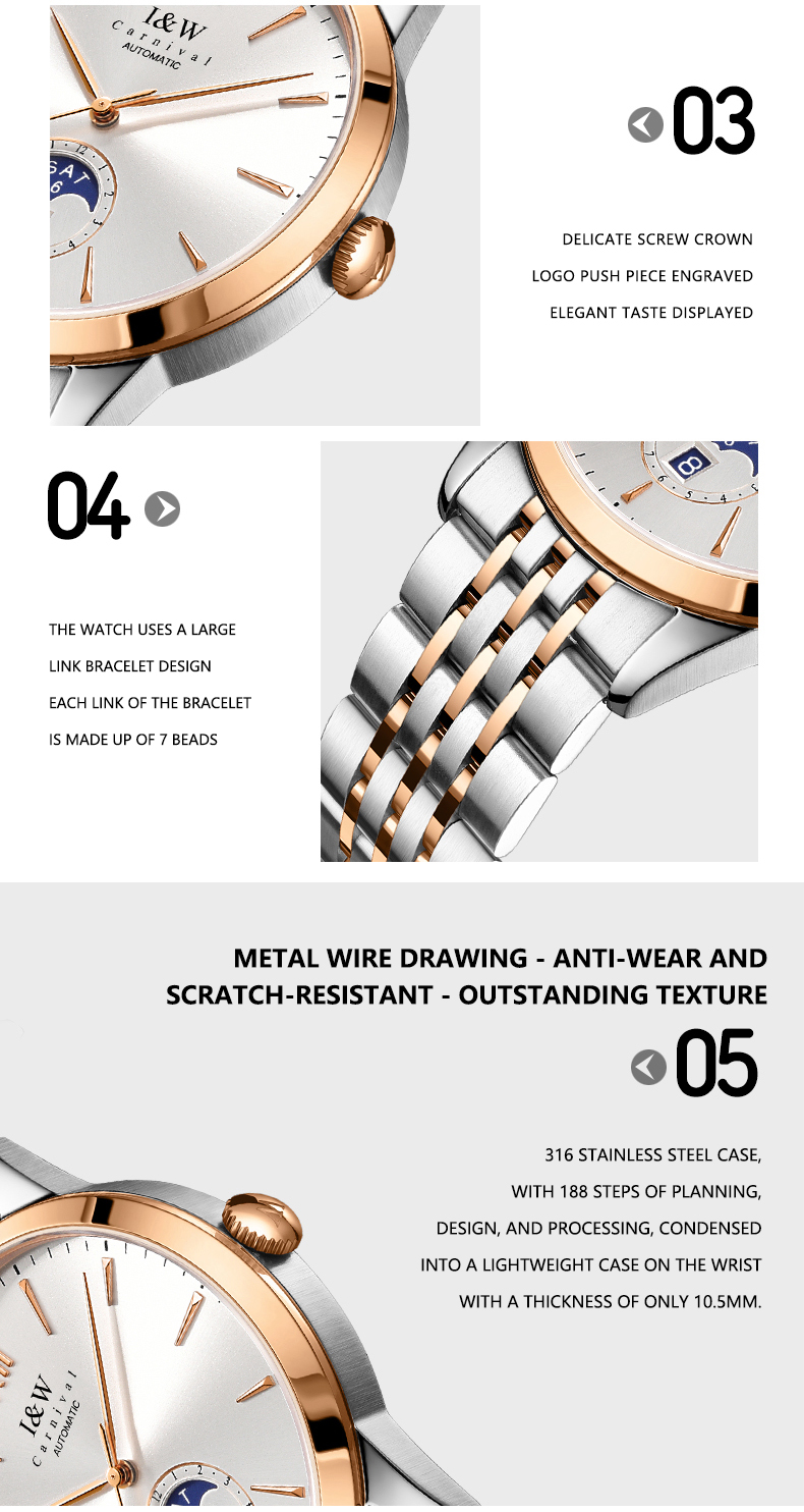 NATURAL STEEL STRIP WHITE FACE, NATURAL STEEL STRIP BLACK FACE, ROSE GOLD STEEL STRIP WHITE FACE, ROSE GOLD STEEL STRIP BLACK FACE, ROSE GOLD STEEL STRIP BLUE FACE