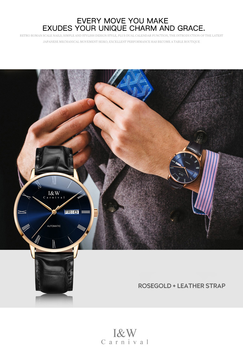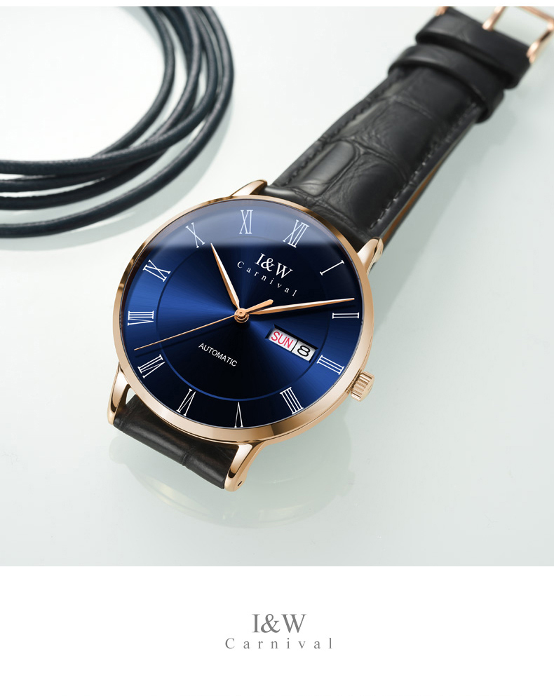 IW.8861G Blue surface and black surface I&W men’s fully automatic mechanical watch retro style leather strap business watch Swiss watch
